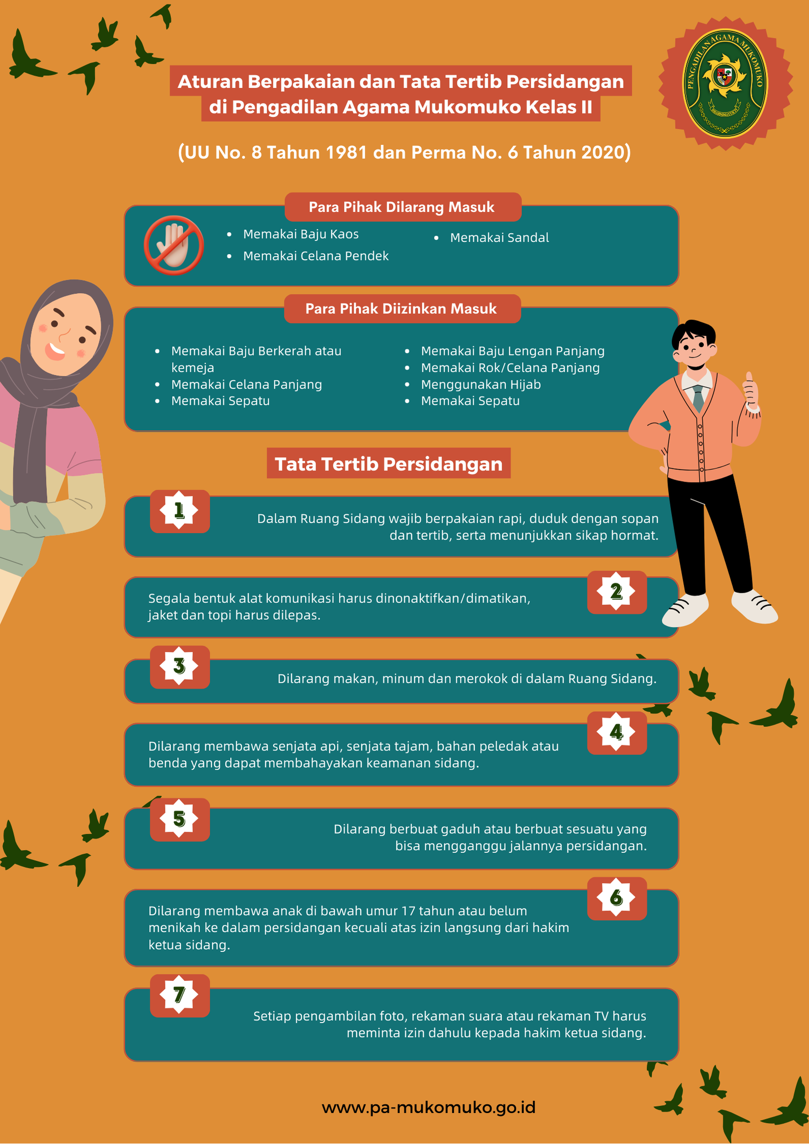 Pengadilan Agama Mukomuko memberikan kemudahan akses informasi jadwal sidang untuk para pihak yang sedang berperkara. Informasi yang disuguhkan yaitu jadwal sidang untuk hari ini, jadwal persidangan yang lalu maupun yang akan datang.