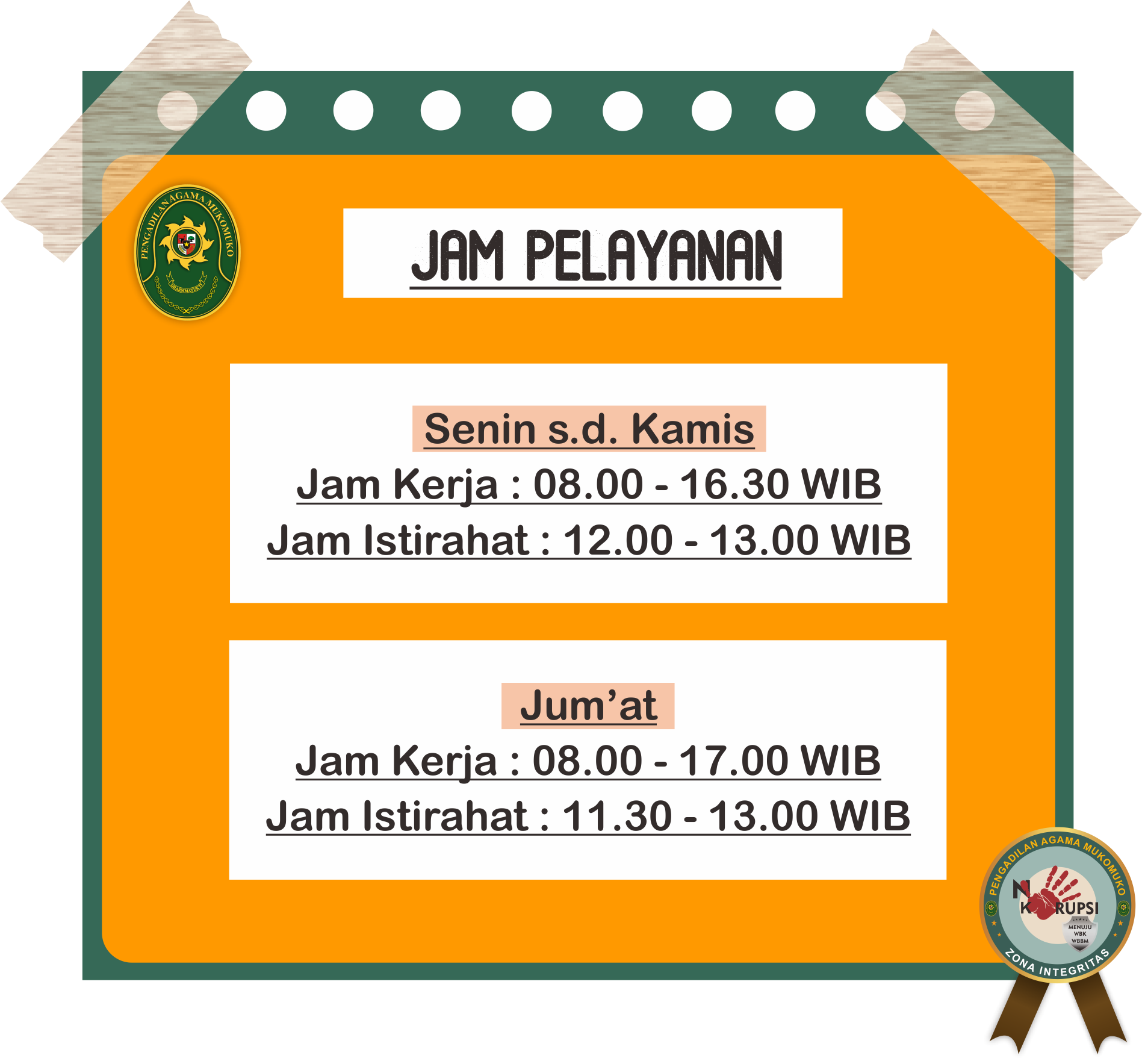 - PENGUMUMAN PENGADAAN LAYANAN POS BANTUAN HUKUM (POSBAKUM) PENGADILAN AGAMA MUKOMUKO TAHUN ANGGARAN 2026 | (10/12)